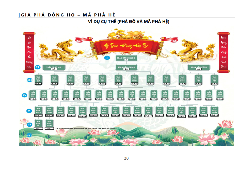 Hệ thống mã phả hệ khoa học: Mỗi thành viên đều được đánh dấu với mã số phả hệ chuẩn xác, dễ tra cứu, giúp bạn dễ dàng theo dõi toàn bộ mối liên kết của dòng họ qua nhiều thế hệ.