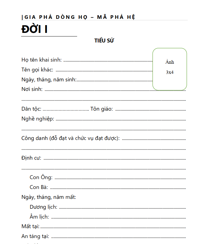 Số lượng thế hệ: Ghi chép lên đến 12 đời, cho phép bạn lưu giữ thông tin lên đến gần 200 thành viên trong dòng họ.